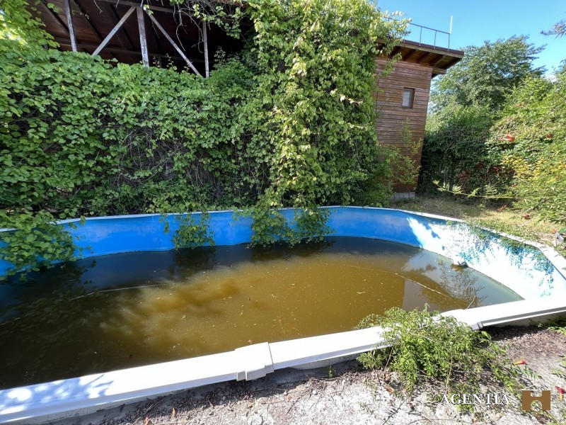 - Descriere emoţională: Langa studiourile Buftea, la 25 km de Bucuresti, in apropierea lacului - la 50m de lac - casa de vacanta compusa din 2 constructii, din lemn si caramida pe un teren de 2300mp cu deschidere de 18mp la strada. Curtea are pomi fructiferi, brazi, plante decorative, vita de vie pe rod. Din cladirea pe structura de lemn - stil maramuresean- de la etaj vederea este spre lac si in zona de living deschis se afla un semineu. In curte se afla si o piscina care trebuie renovata si o sauna ruseasca. Facilitati - canalizare, gaze si apa curenta. Atat pentru casa de vacanta cat si pentru locuinta permanenta proprietatea are un potential foarte mare in termen scurt. De asemenea la 800m distanta se vand 2 loturi de casa de 650mp (deschidere 21m) cu 27000euro/lot. Oferta exclusiva a Agentiei H. Comision 2% din pretul de vanzare de la cumparator.